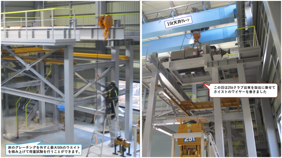 試験架台の設置 お客様立会 試運転/最大50tの荷重試験