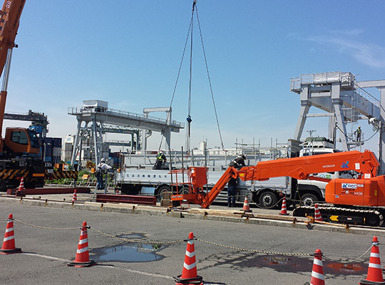 一般土木工事では現場内への資材搬入や作業設備の移動などが、作業効率の向上を妨げています。クロダテックは資材の運搬・搬入を工夫し、作業設備に機動力を持たせることにより現場作業の効率や安全性を高め、納期の短縮やコストダウンにも貢献しています。